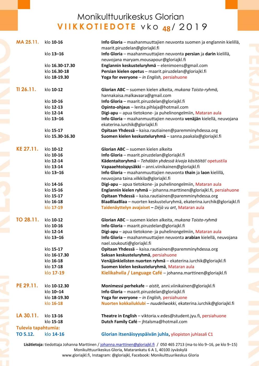 Mukavaa marraskuista viikonloppua, nähdään taas Gloriassa! 😊
